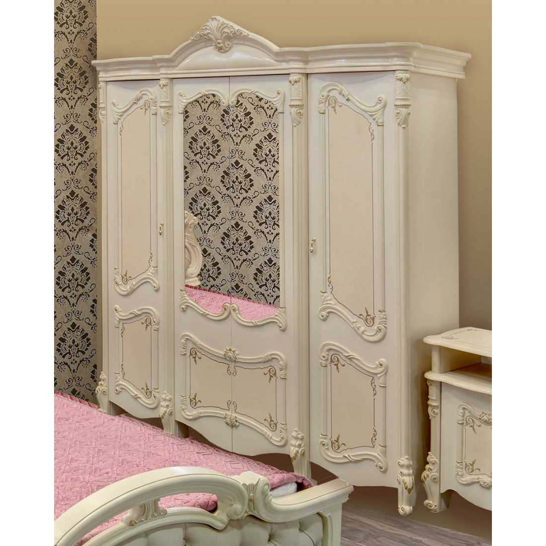 Четырехстворчатый шкаф для одежды Рафаэлла (беж) от Российской фабрики «ДИА мебель», выполнен в элегантном бежевом цвете. Такой шкаф в классическом стиле в сочетании с изящным золотистым орнаментом и глянцевым покрытием придаст вашей спальне незабываемую атмосферу роскоши. Коллекция «Рафаэлла» предназначена для настоящих ценителей роскоши и людей умеющих по достоинству оценить комфорт.