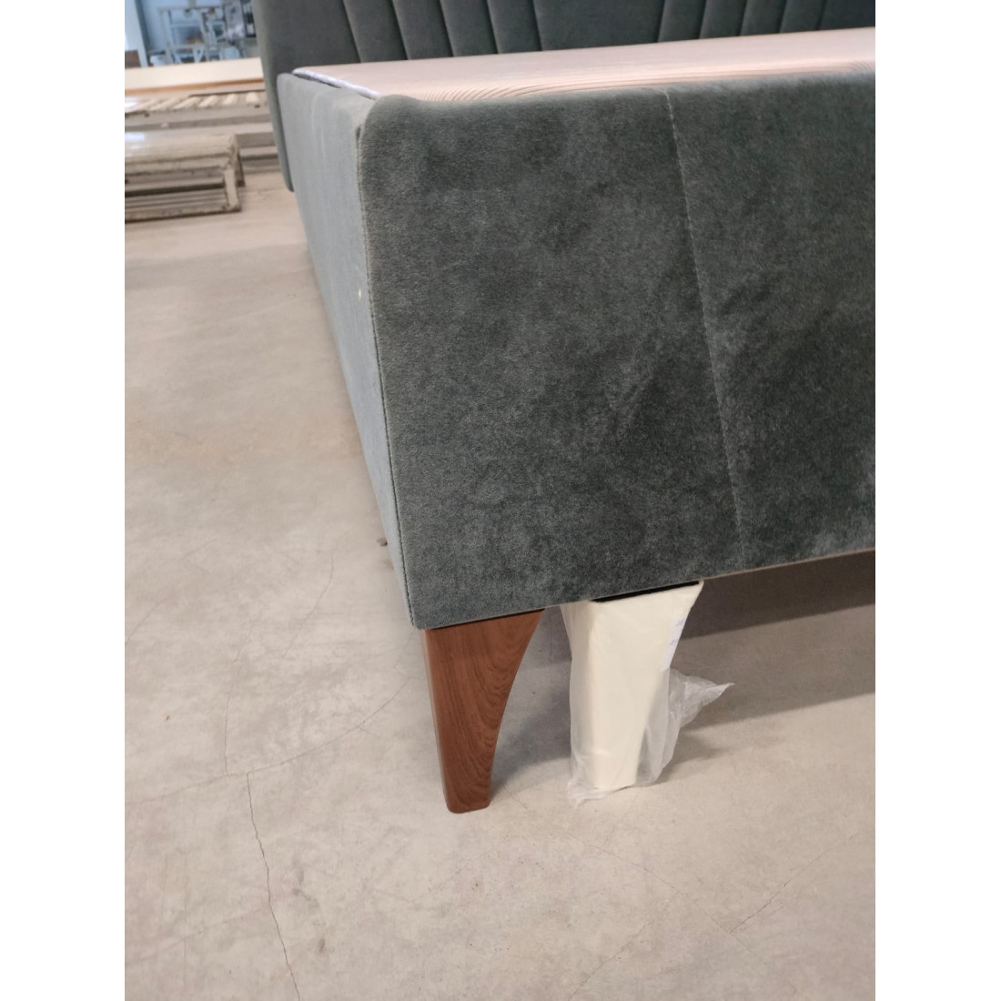 Спинка кровати TERA, рамочно- щитовой конструкции, каркас спинки на основе полуфабрикатов из материалов, плиты ЛДСП или ДСП т.18, брусков из пиломатериала, ДВП, заглушки картон технический. Спинка укреплена горизонтальным опорным профилем с двумя приваренными вертикальными стойками с вваренными гайками для навески крепежа. Профиль из металлической трубы 20х20мм крепится при помощи винтов с гайками. Настил панно поролон т.20мм. Чехол спинки ткань мебельная с декоративной стежкой на основе поролона т.18мм, синтепона, спанбонда. Обивка с задней стороны спинки ткань техническая или спанбонд.
