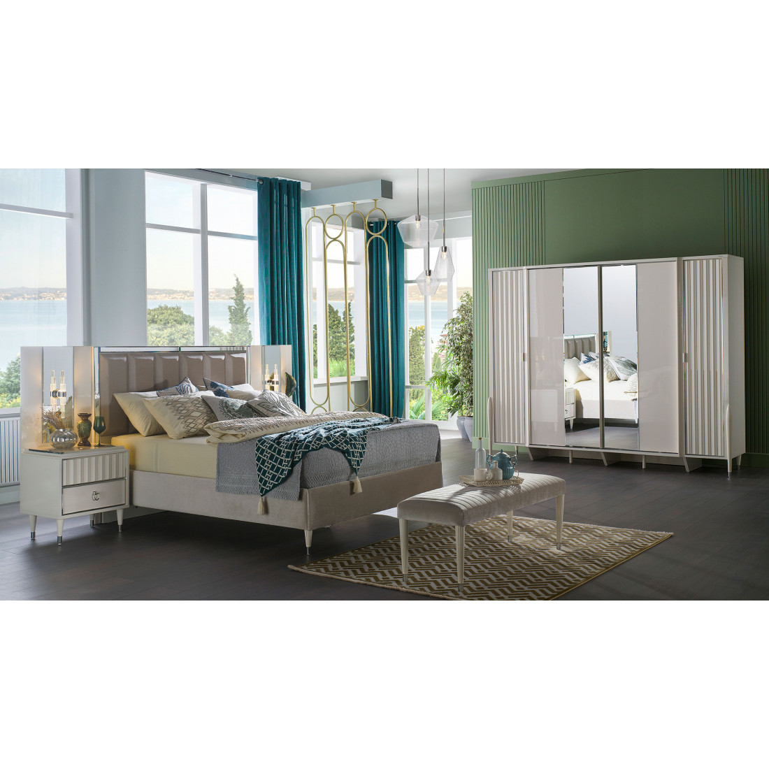 Дополните  двухспальнюю кровать Gravita (Гравита) GRAV-26от турецкого бренда BELLONA  соответствующими атрибутами для спального гарнитура.
