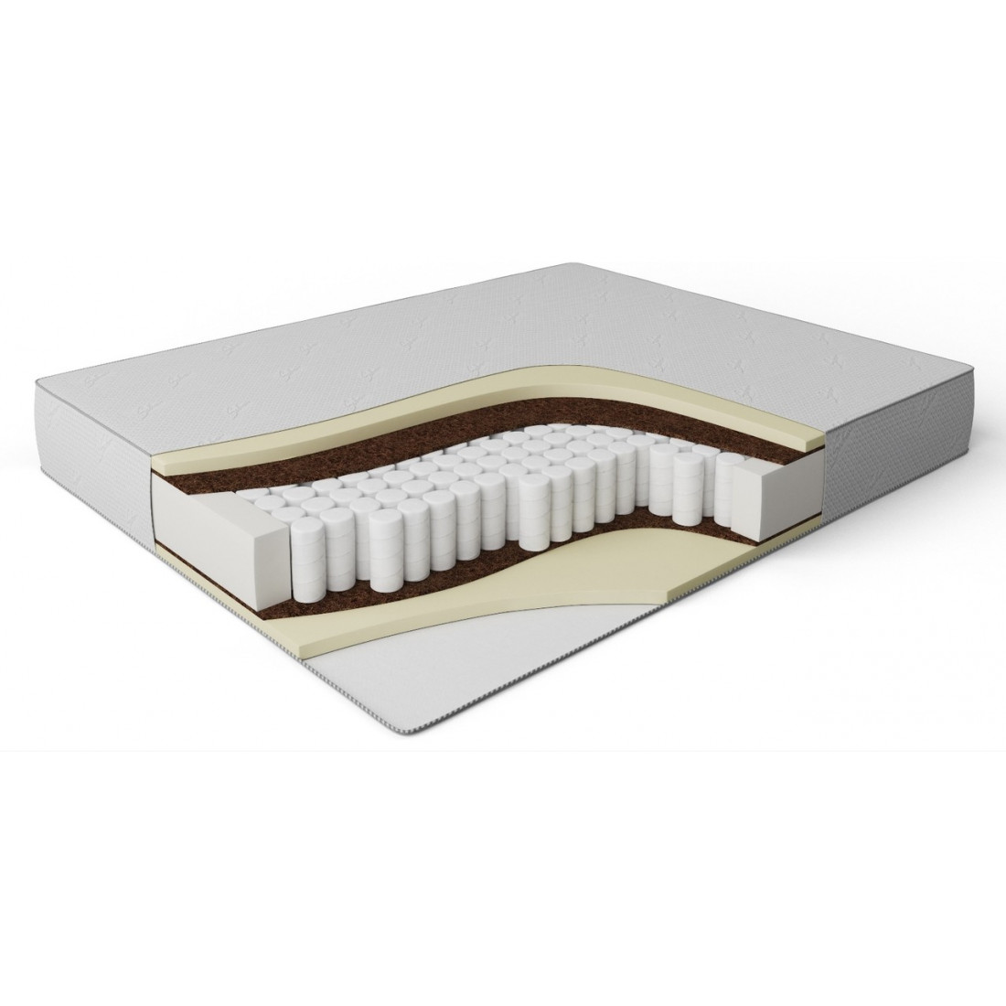 Наполнение: независимый блок TFK, высота блока 140 мм, Memory 40 мм с двух сторон, кокосовая плита 10 мм с двух сторон, усиление по периметру - короб из ортопены.