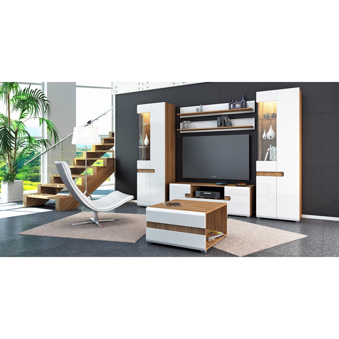 Модульная мебель для гостиной Леонардо белый глянец композиция 1